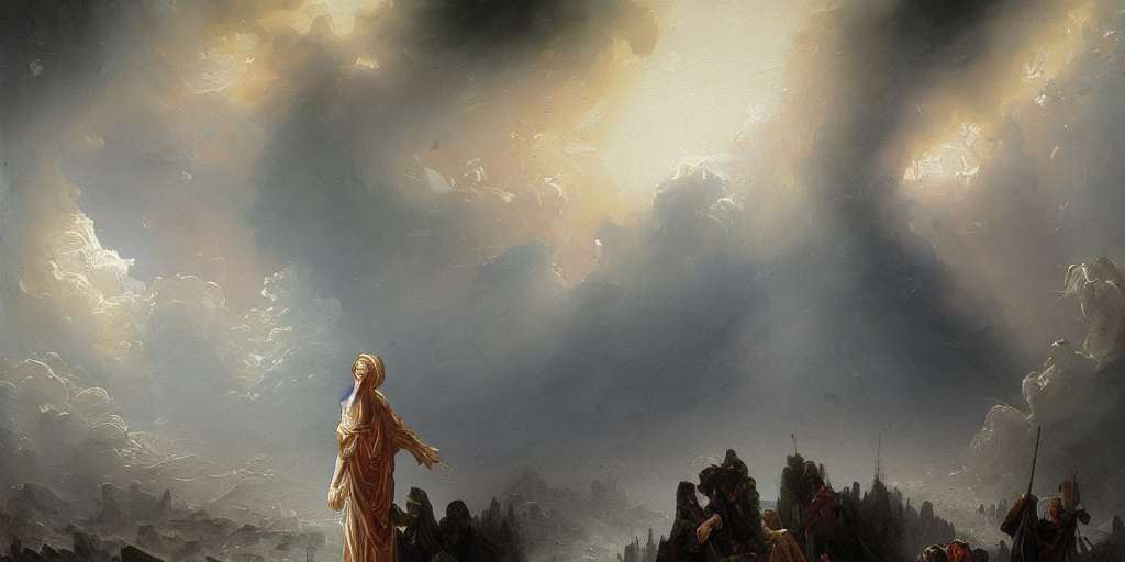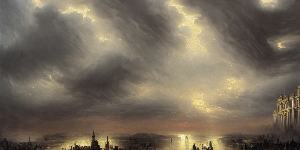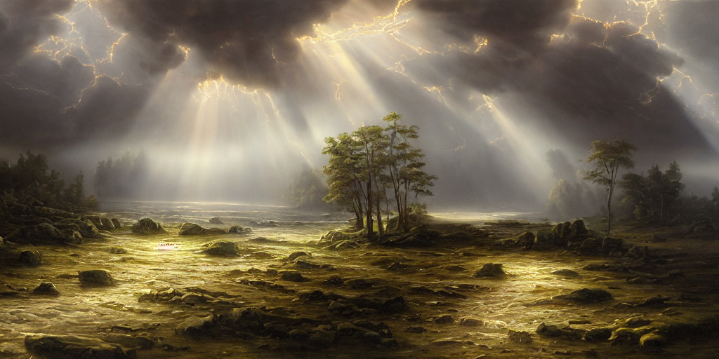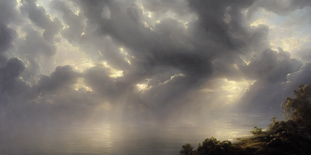 From clouds that hung, like banners, o’er,
