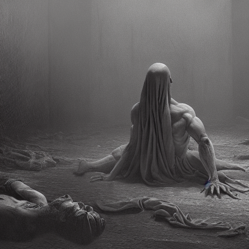 There was blood upon her white robes, and the evidence of some bitter struggle upon every portion of her emaciated frame.