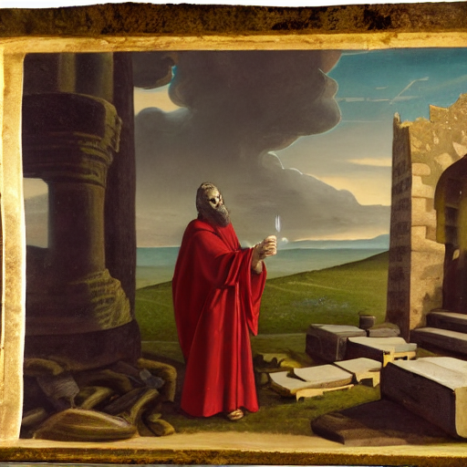"And Ethelred, who was by nature of a doughty heart, and who was now mighty withal, on account of the powerfulness of the wine which he had drunken, waited no longer to hold parley with the hermit, who, in sooth, was of an obstinate and maliceful turn, but, feeling the rain upon his shoulders, and fearing the rising of the tempest, uplifted his mace outright,